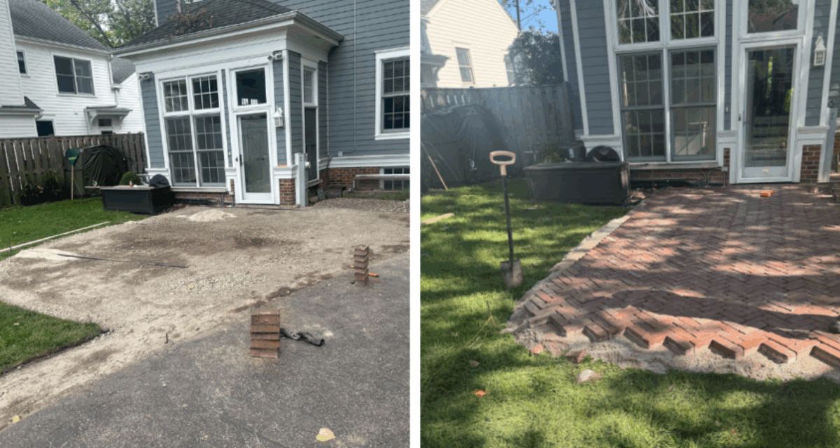 We removed both layers, installed the correct gravel foundation, and rebuilt the entire outdoor space the right way.